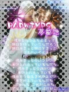 昨日に夢を託せば後悔で 明日に夢を託せば希望で 蹲って 閉じこもって 明日を待っていたんだよ 「未来のために今がある」と言われても僕は信じないよ 「現状に甘んずること勿れ」と言われても僕は笑えないよ 叶えたい夢ばかり数えて 叶えた夢は泣きながらきっとどこかへ・・・ 僕はきっと今いつかの夢の上に立っているんだね 息を吸って そして吐いて それだけじゃ喜べなくなって 僕にあって 君になくて 君にあって 僕にないものがあるから 叶えた夢の数を数えよう 叶わない夢は誰かがきっとどこかで・・・ 僕が立っているここはきっと誰かの願ってる場所で 誰かがきっと今僕にとっての夢を叶えていてくれる Let's party dance03 僕はなんで 立ち止まって 明日を待っていたんだろう 僕はきっと今いくつかの夢の上にたっているんだね 僕はもう数え切れぬほどの夢を叶えているんだね
